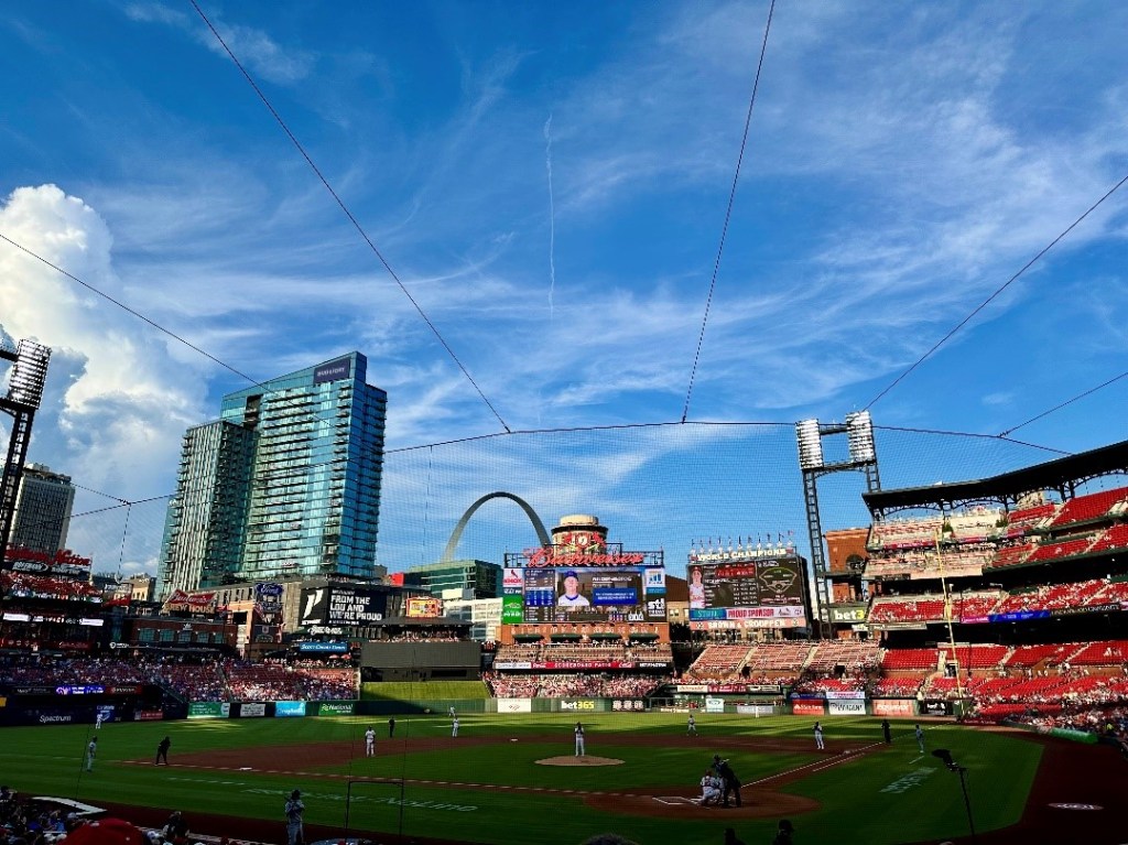 Busch Stadium sits at street level, like it’s been gently placed into the city, rather than on top of it. It was magical to put it lightly. From our seats behind home plate, the Gateway Arch towered perfectly over the outfield. A symbol of a bright future and a strong past. It’s the kind of view that makes you pause mid-inning to take it all in.